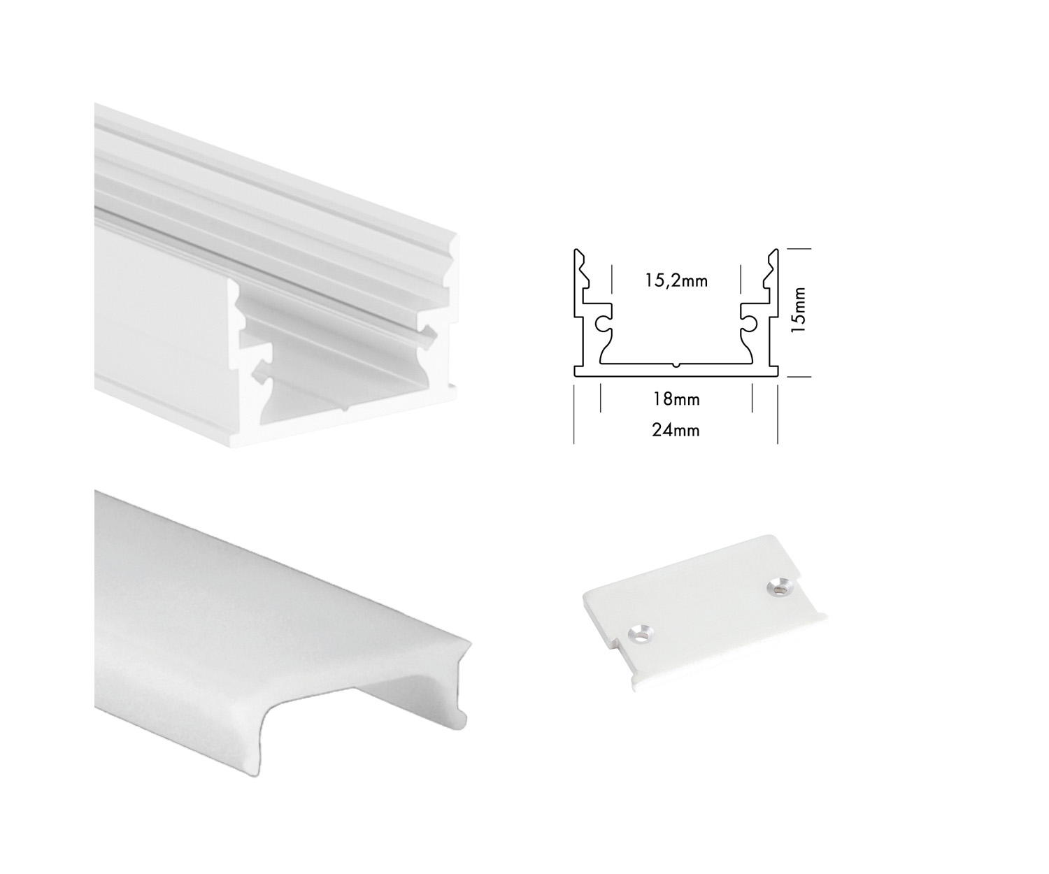 Profil M-Line Low 200 cm weiß + Abdeckung opal + 2 Endkappen
